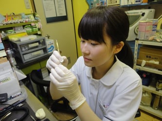 他の医院の衛生士さんと話していて感じることは、当院は院長先生がとても勉強家で設備も揃っているので治療だけでなく、虫歯・歯周病予防がただ歯石をとるだけでなく顕微鏡で歯周病菌を患者さんに直接見ていただくことができたり、海外から取り寄せた高濃度のフッ素を塗布することができたりと私たち衛生士の活躍できる場が多いということです。